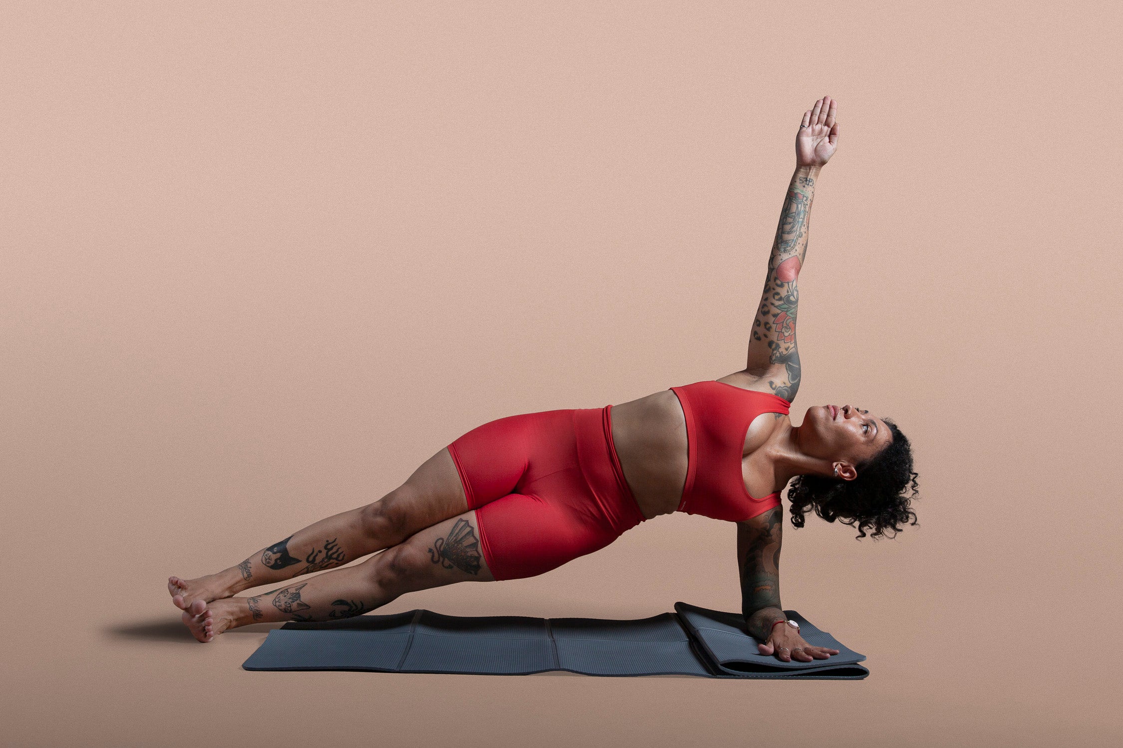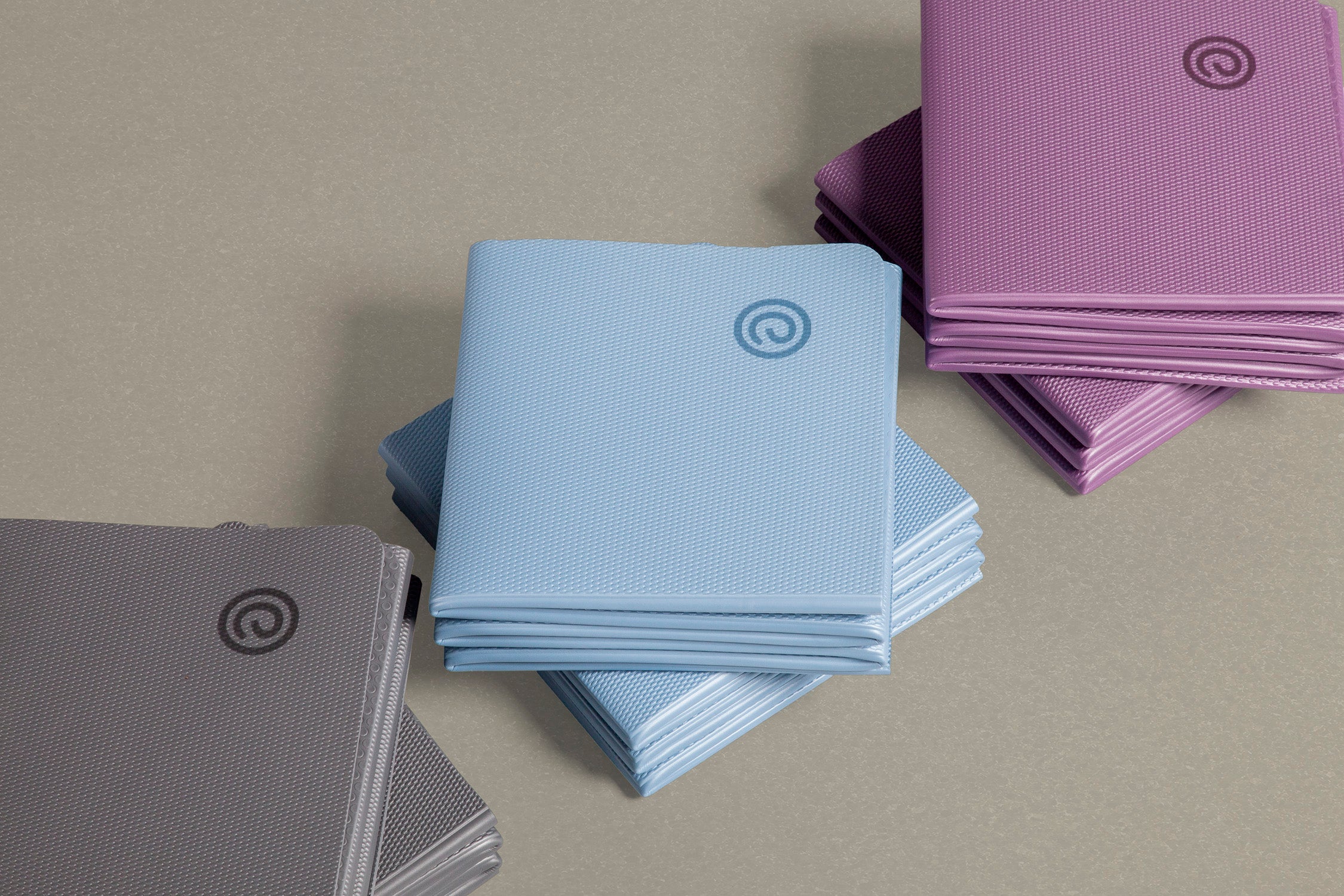 Dobrável e leve, vai com você para o estúdio, parque ou viagem. Seu espaço de prática sempre à mão.